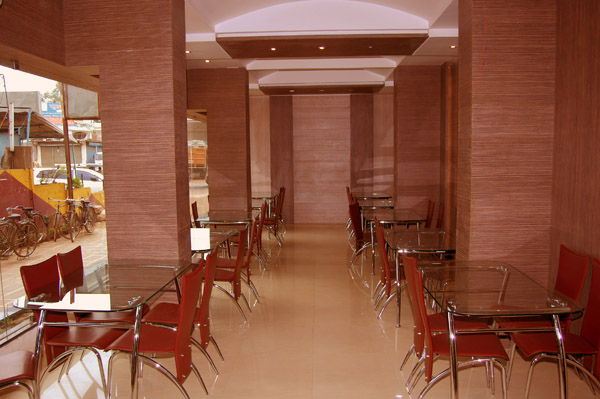 • project name Family restaurant The Restaurant is spacious with warm interiors and a hush hush ambiance. It is capable of seating very large number of people without any discomfort.